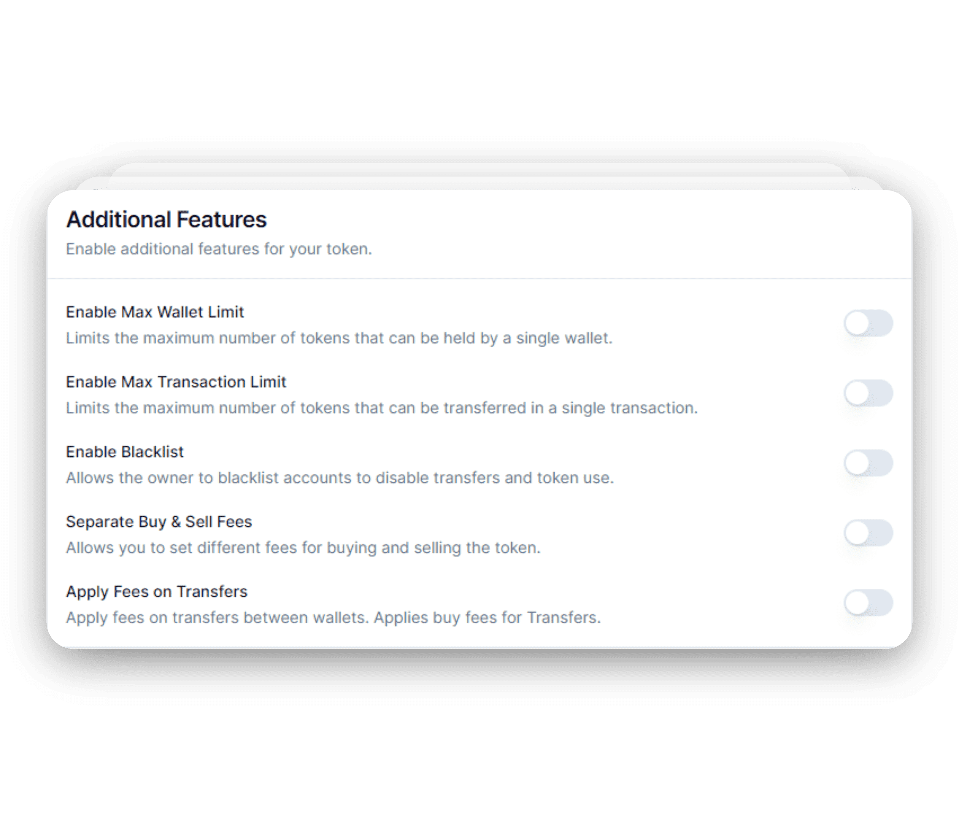 We also offer Deflationary tokens in our app. Deflationary tokens are tokens that have a mechanism to remove tokens from supply, usually a burn tax. This will reduce the total supply of the token over time, making it more scarce and valuable.